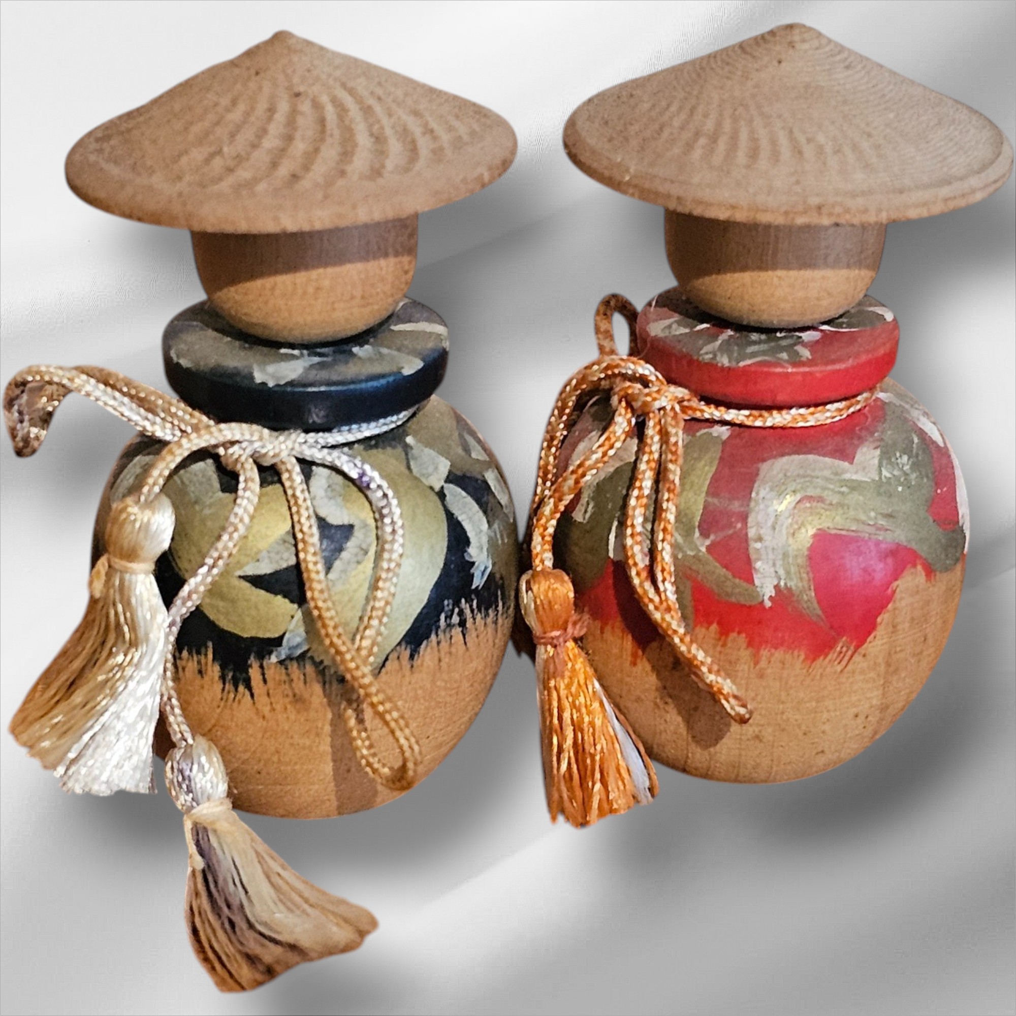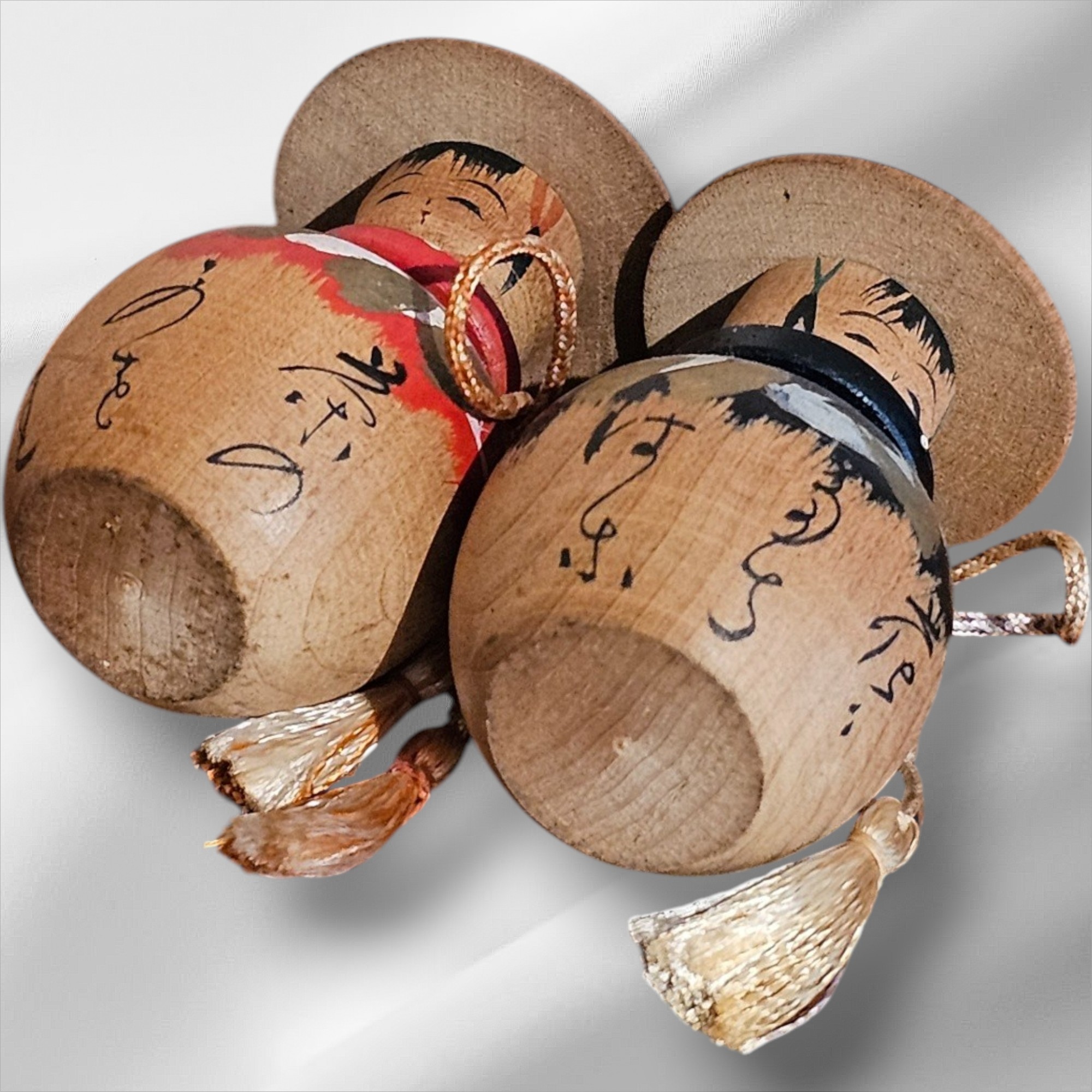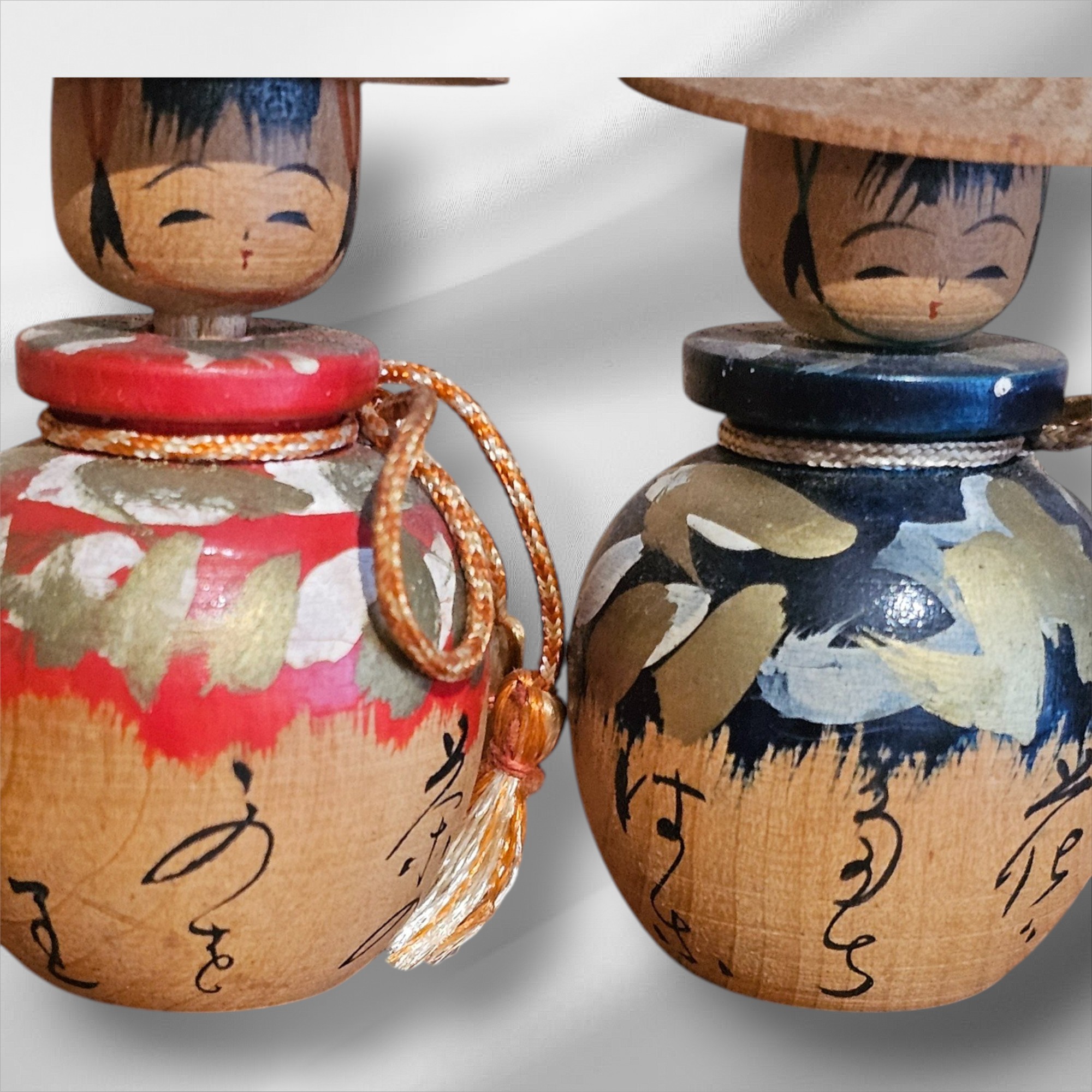 Enhance your collection with this exquisite Tiny Pair of Unique Vintage Japanese Kokeshi Dolls.